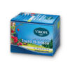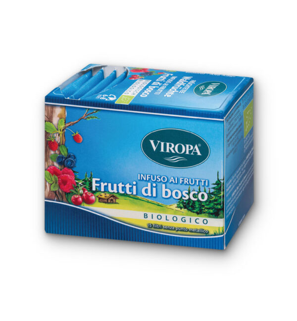 Összetevők: hibiszkusz*, alma*, csipkebogyó*, bodzabogyó*, természetes aroma, narancshéj*, cikória gyökér*, áfonya*, fekete ribizli*, málna*, eper*, vörös áfonya*. Származási hely és csomagolja: Viropa Import I-39042 Brixen/ Bressanone BZ Südtirol/ Alto Adige